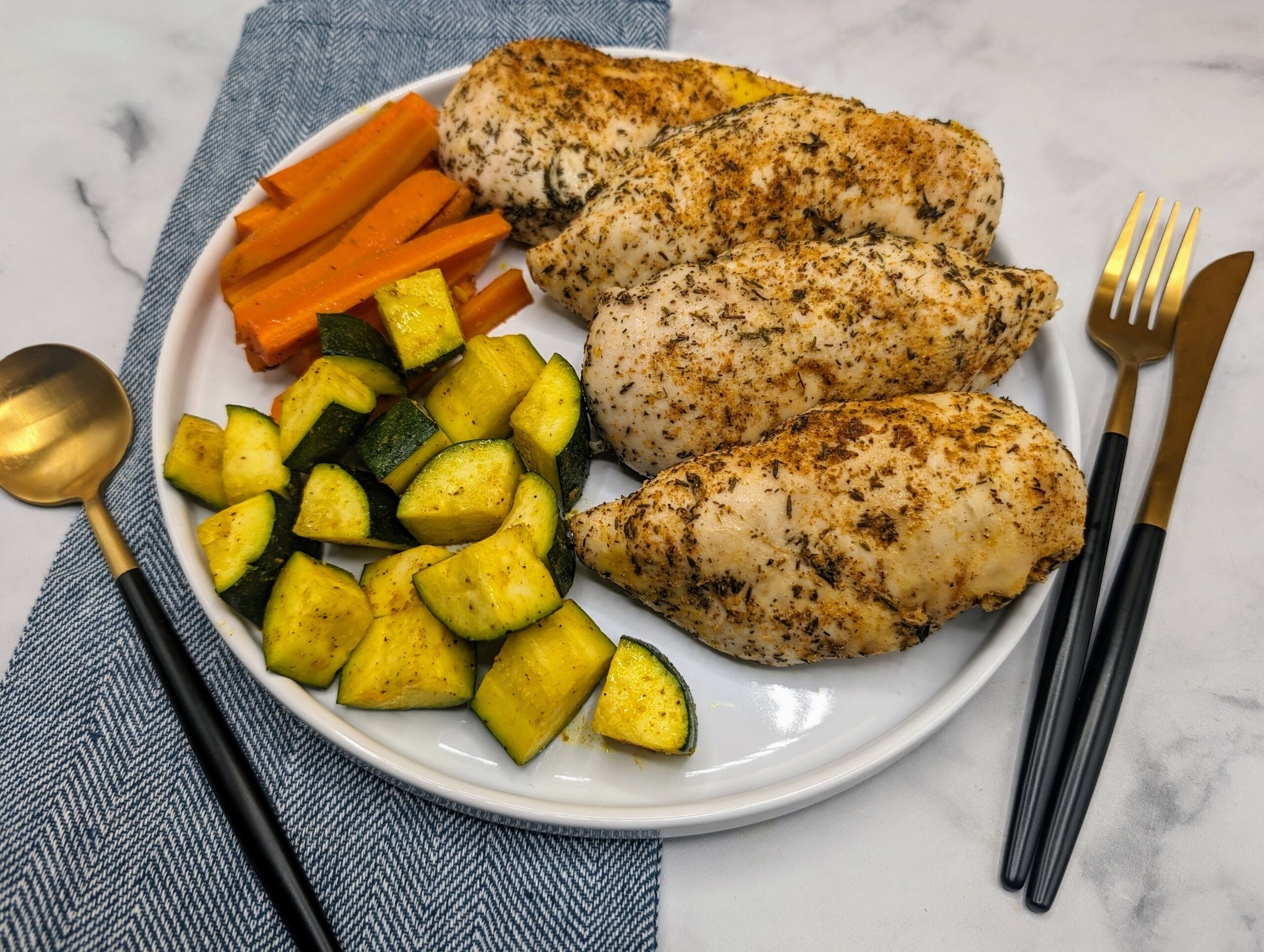 One Pan Chicken, Golden Zucchini and Carrot Fries-Low FODMAP