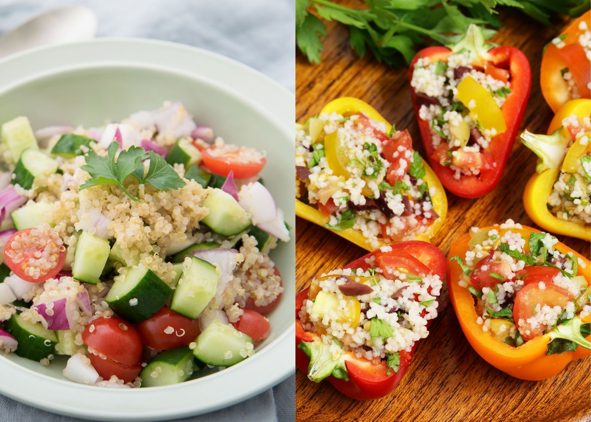 Quinoa Greek Salad and Quinoa Stuffed Bell Peppers