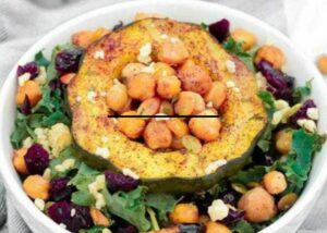 Remove after 5 minutes. Arrange the chopped kale in a large bowl. Top with cooked quinoa and the warm ingredients from the baking pan. Drizzle with maple syrup and enjoy!