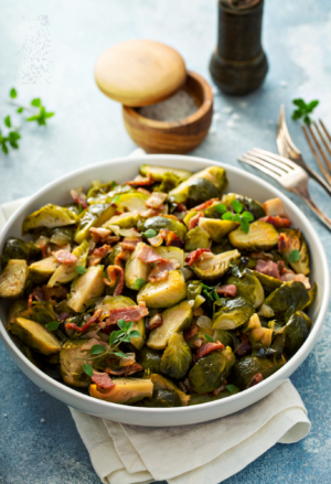This classic Balsamic Roasted Brussels Sprouts with Bacon side dish has the perfect balance of sweet and savory thanks to the balsamic touch and the bacon. Note: This recipe requires 2 heavy-duty sheet pans for 7-10 servings.