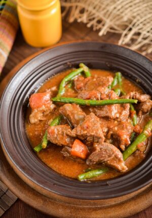 Tender beef with green beans and bell pepper makes a great weeknight stew.