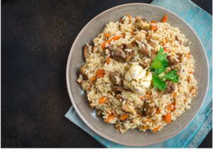 Beef plov is a one-pot Uzbek dish made with rice, beef, carrots, onions, garlic, and spices. While it’s a traditional Uzbek dish, it’s also popular among Russian and Ukrainian families. It’s a total comfort food designed to feed a lot of people, making it the perfect family-friendly recipe!