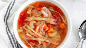 Add the water to a large pot over medium-high heat. Add the onion, celery, carrot, and garlic and cook for about five minutes until the onions begin to soften. Stir in the salt and Italian seasoning and continue to cook for another one to two minutes.