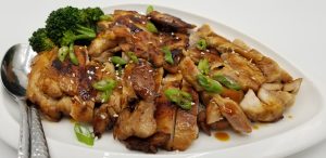 A classic Japanese dish made with grilled chicken thighs, topped with a delicately sweet soy-based sauce. Pair with plain or fried rice and one of our many vegetable side dishes. Chicken can also be cooked in a pan on the cooktop if a grill is not available.