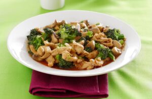 Pour sauce over chicken and broccoli, cover and cook for several minutes or until broccoli is tender crisp. Add additional water if sauce is too thick and adjust seasonings if needed.