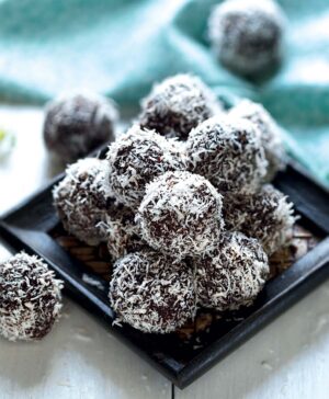 Roll the balls in toppings of your choice, like cocoa powder, chocolate sprinkles, or flaked coconut