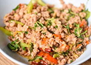 This "Egg Roll in a Bowl" is a deconstructed version of the popular dish, served with brown rice for added fiber and heart health.