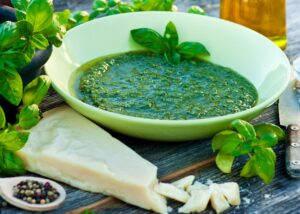 Place pesto in a bowl and mix in the cheeses. If pesto is too thick add a bit more olive oil.
