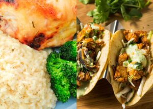With this selection you'll get two different chicken dishes with 4 servings each. First, enjoy delicious tacos packed with spiced chicken, black beans, shredded cabbage, and tomatoes. And second, enjoy roasted garlic chicken and 2 sides. These delicious meals are packed with protein, fiber, and heart-healthy fats, making them an excellent choice for a balanced, diabetes-friendly, and heart-healthy meal!