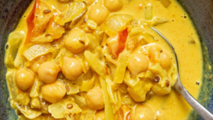 Stir in the tamarind, coconut milk, and chickpeas. Bring to a gentle simmer and season with more salt if needed. Divide into bowls and enjoy!