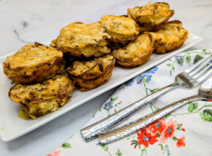 The recipe card was updated 11/2020; the cooking time was reduced by 5-10 minutes after further testing and feedback. The cook time will depend on the thickness of your potato slices and how high you stack them, as noted. Please keep this in mind and check for doneness as the tops and sides become golden brown and bubbly.