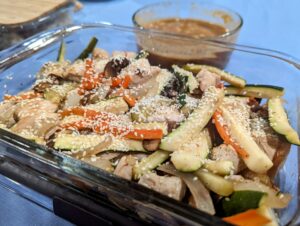 In the same skillet, add the ghee and melt. Then add the onions, carrots, zucchini, and mushrooms. Cook, stirring occasionally until just cooked and slightly tender (you don't want them too soft, I like a little crunch to mine still), about 4 minutes.