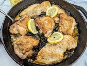 Healthy kale, chicken thighs and bright lemon flavor combine to make a wonderful and fresh dish.