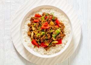 Enjoy the spicy, salty, sweet flavors of Korea with this delicious lean ground beef and whole grain rice bowl.