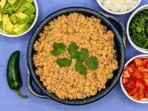 This very low carb Mexican cauliflower rice is a healthy, paleo-friendly, keto-friendly, vegan side dish recipe that is bursting with Mexican flavors! It is the perfect side dish to taco bowls, fajitas, or inside burritos.