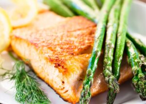 Not only is salmon nutrient dense, but it's highly flavorful, and when paired with asparagus and rice, you have a complete meal!
