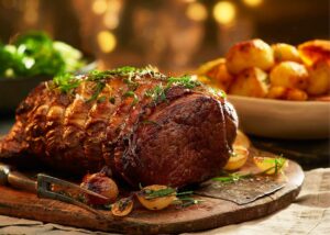 Place the roast in a large roasting pan and roast in oven for 20 minutes per pound (more or less), checking temperature for desired doneness.
