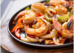 Working carefully, move vegetables onto one side of the baking sheet. Place shrimp onto the opposite side of the baking sheet in a single layer.
