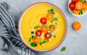 This sweet corn gazpacho will keep in an airtight container in the fridge for up to 3 days.