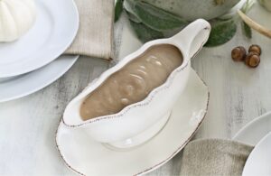 A classic with a little twist. I like pairing this with pancetta, sourdough and shitake mushroom stuffing. If you can make your own stock with turkey bones and giblets, even better. The bacon grease gives a little extra punch but butter can be substituted just as easily