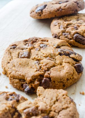 Ooey and gooey chocolate chip cookies that are big, thick, bakery style cookies. Family favorites
