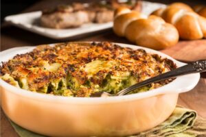 This creamy baked pasta dish combines zucchini and mushrooms with fresh mozzarella, Fontina, and Romano cheeses.