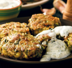 This recipe is courtesy of dietician Karin Adoni, and comes from her cookbook Clean Diet by Karin Adoni Company. These fritters combine ground turkey and grated zucchini to make tasty bites for a variety of occasions! Note: This recipe requires 2 skillets for 7-10 servings.