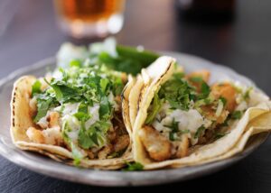 When ready to serve heat the low carb tortillas in the microwave. Fill with cauliflower/nut mixture, then top with onion and cilantro.