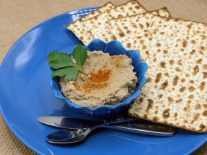 Before serving, sprinkle with paprika and parsley. Serve with matzo for Passover, or fresh bread or crackers, and/or raw vegetables for low carb option.