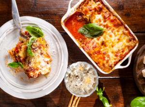 Cover the lasagna in foil & bake for 20 minutes. Uncover, add a garnish of fresh basil on top & broil on low for 5 minutes. Cheese should be browned & bubbly.